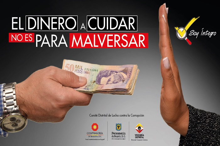 la imagen del Comité, que está integrado por la Contraloría de Bogotá, Personería y la Veeduría Distrital, así como el eslogan que lo identificará: El dinero a cuidar no es para malversar.