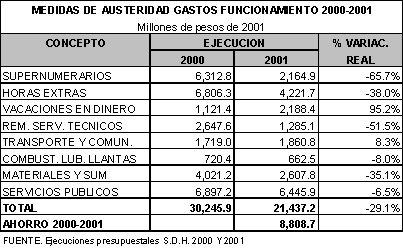 de las vigencias 2000-2001 se observan ahorros considerables en rubros de gastos