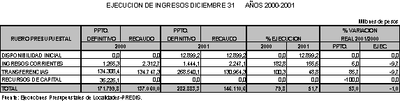 1997 y 2001 la ejecución de los recaudos de los Fondos de Desarrollo Local