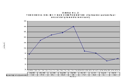 En los gráficos 1 y 2 puede observarse el comportamiento del efectivo y de los medios de pago ampliados respectivamente donde se muestra su tendencia en el año 2001.